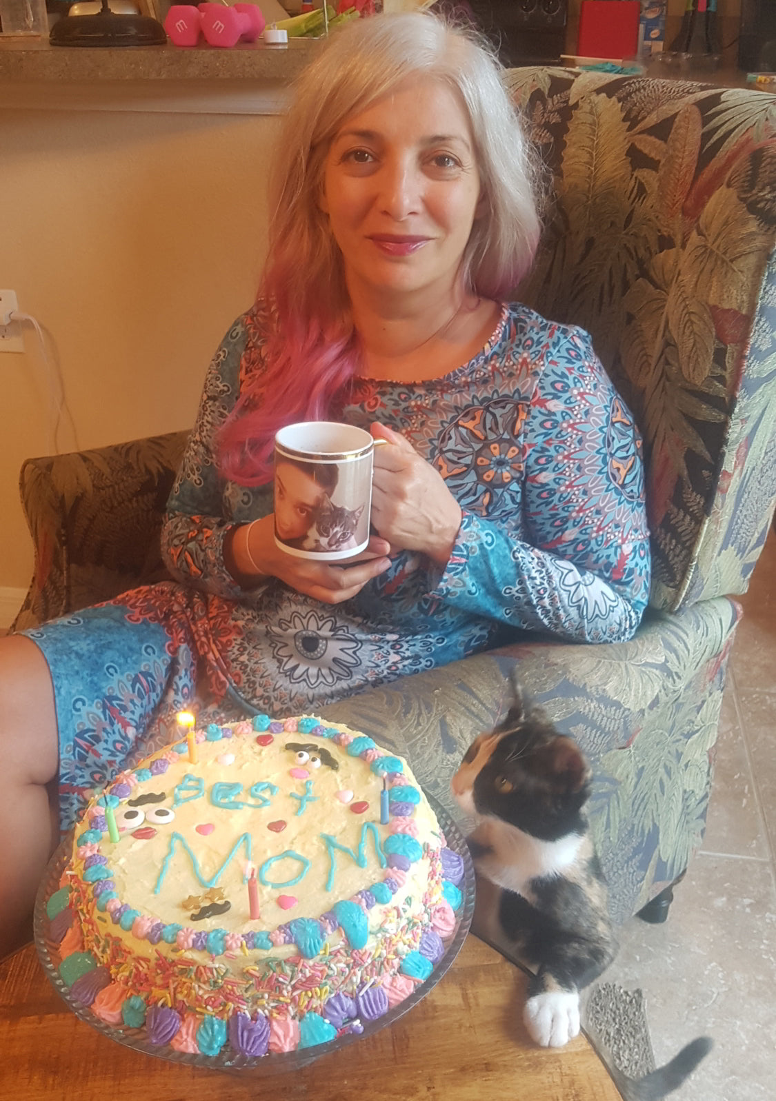 My name is Ellie; I am Albert’s mommy servant. I have always loved animals, and it seemed like a good transition to start helping homeless and sick animals by fostering them. Albert was the first cat we fostered; as you can see, he was our first foster fail. I have poop duty and feeding duty. Besides caring for their basic needs, I ensure they are healthy when they go to their new families. I also love to spoil my cats. I do this with lots of hugs, kisses, belly rubs, and treats.