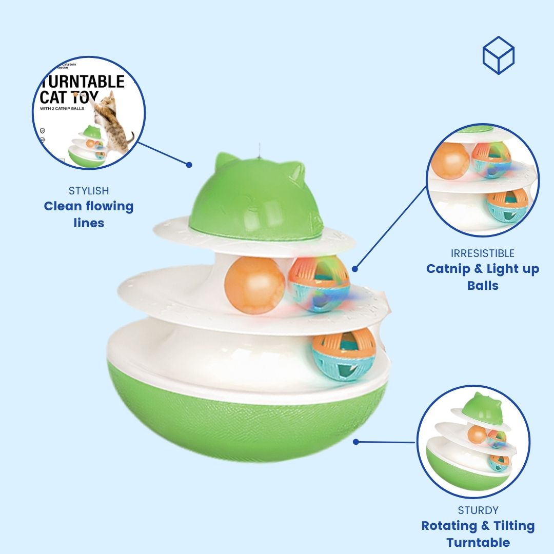 Turntable Cat Toy with 2 Catnip Balls & 1 Light-Up Ball!